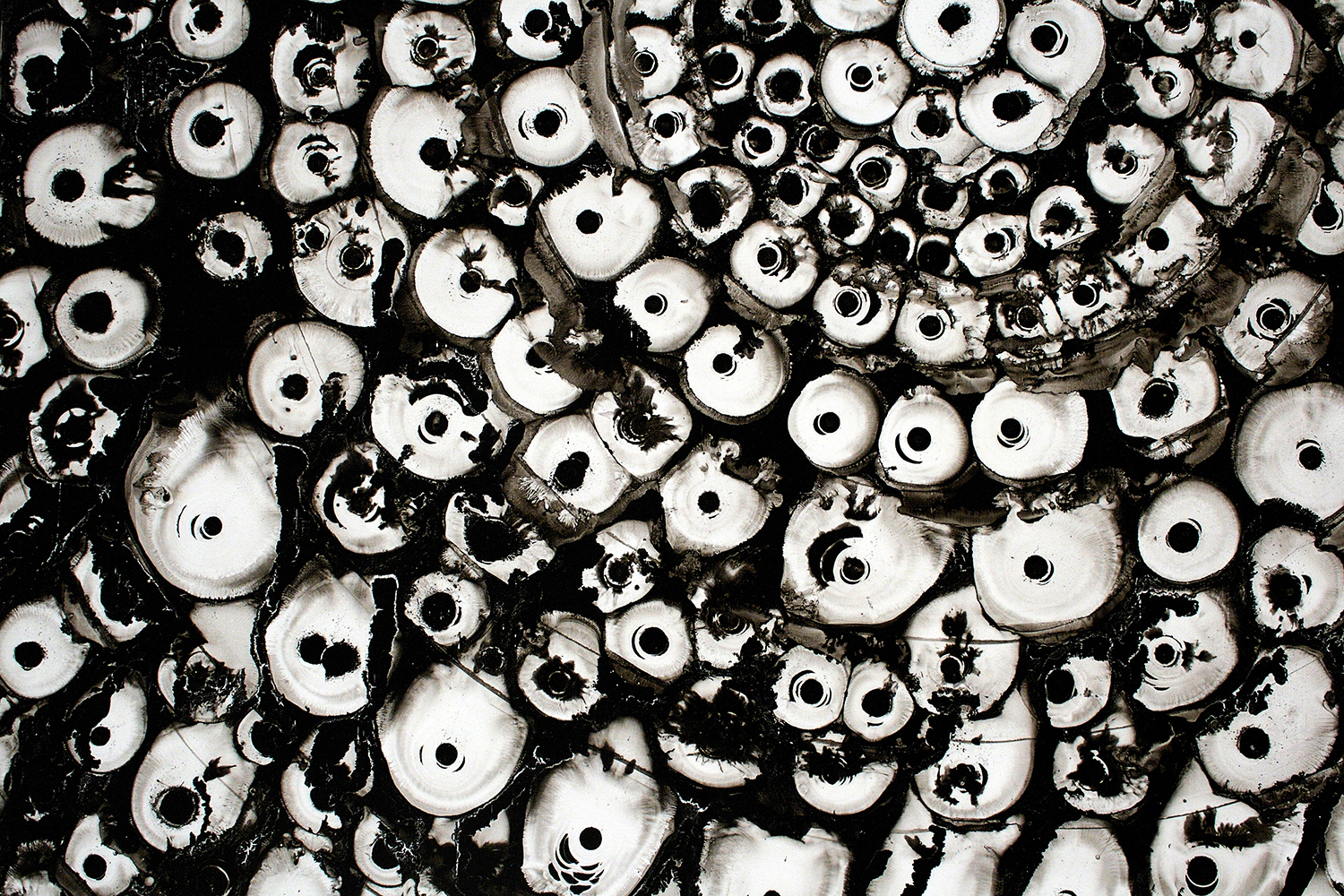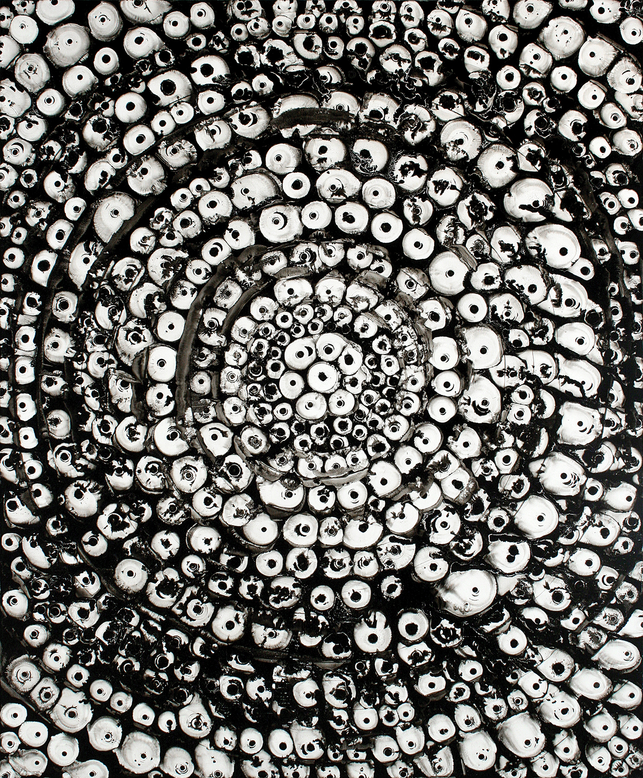 acrylic, ink, and spray deodorant on canvas, 60 x 72"