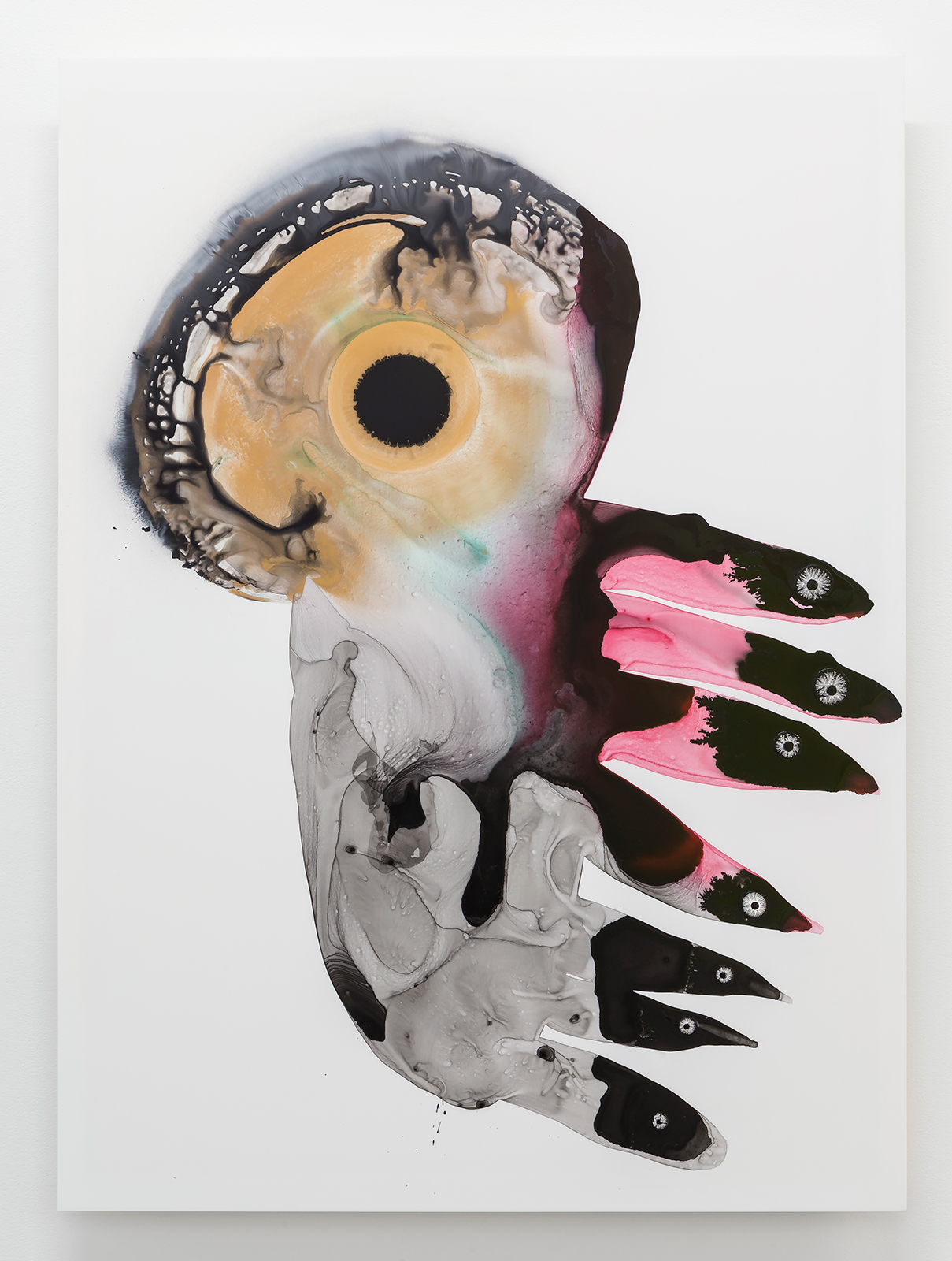 acrylic and spray paint on acrylic panel, 36 x 48"